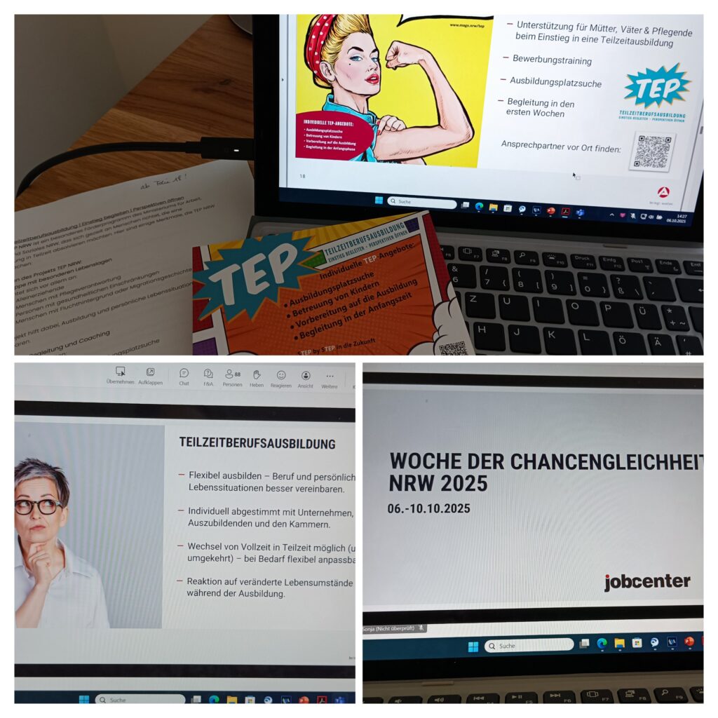 Am 06.10.2025 hat die digitale Woche der Chancengleichheit NRW 2025 begonnen. Die Regionalagentur Westfälisches Ruhrgebiet war eingeladen über das Projekt TEP (Teilzeitberufsausbildung | Einstieg begleiten | Perspektiven öffnen) und die zahlreichen Vorteile zu berichten: